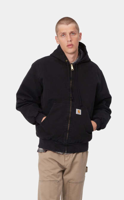 The OG Active Jacket is constructed from the 12oz organic cotton "Dearborn" Canvas. The jacket has a loose, boxy fit and diamond quilted lining, along with an adjustable hood and the classic woven Carhartt WIP logo on the left hand pocket. The garment is triple-stitched at vital stresspoints for durability.