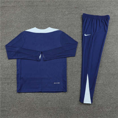 The France Dark Blue Tracksuit delivers a sleek, powerful look inspired by modern sporting elegance. Crafted from lightweight, breathable fabric, it ensures maximum comfort for both training and everyday wear. The deep dark blue color creates a clean, premium appearance with a strong athletic feel. With a tailored fit and durable finish, this tracksuit is built for performance and refined street style.