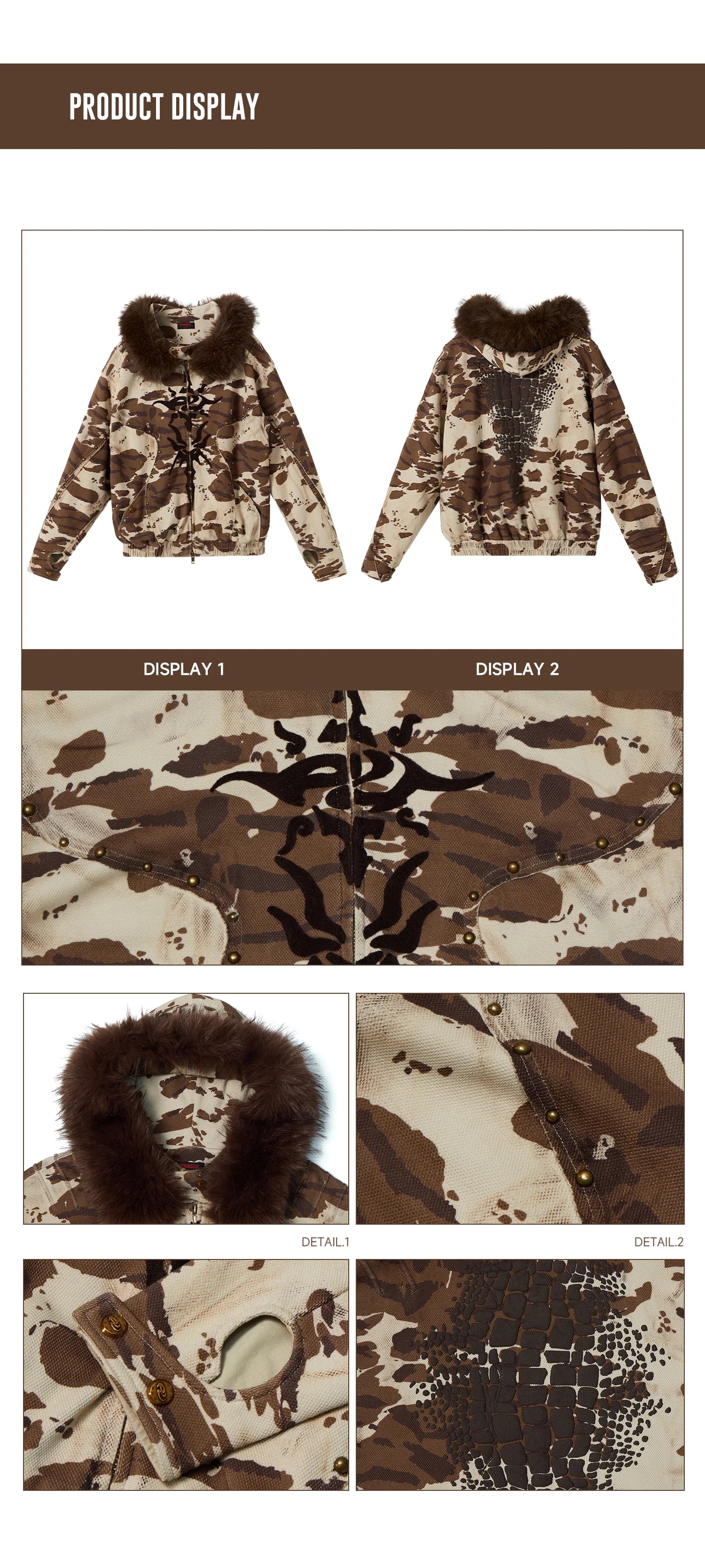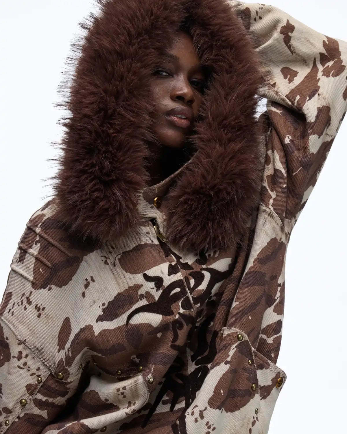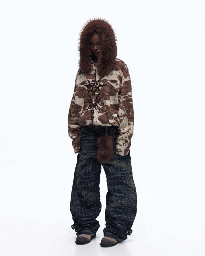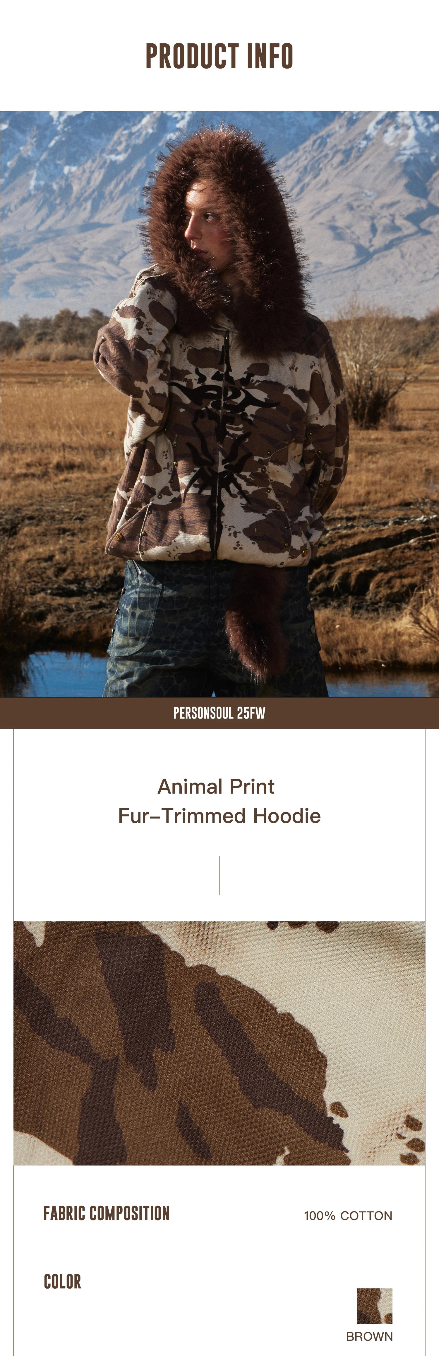 Animal Print Hoodie with Fur-Lined Hood