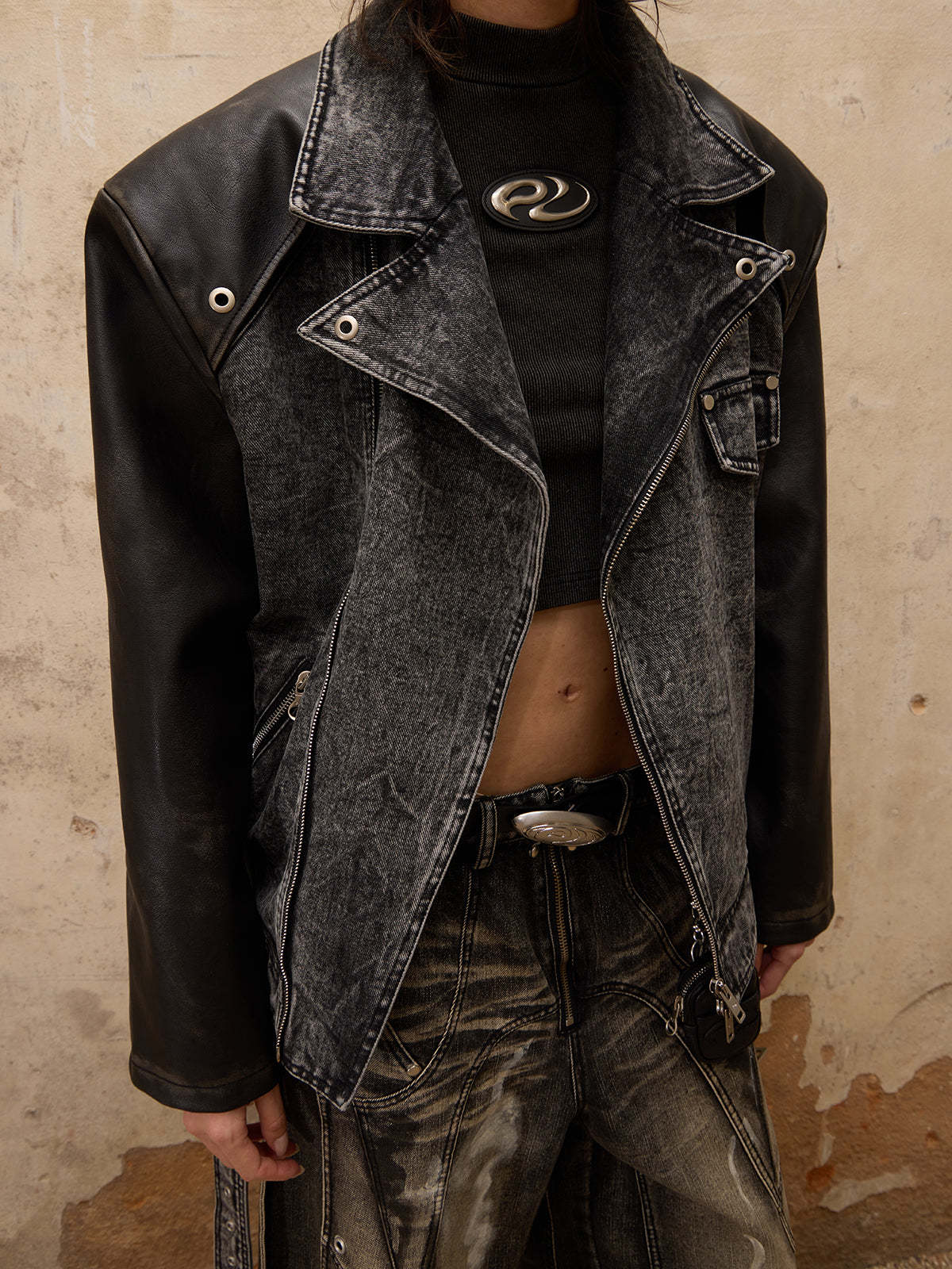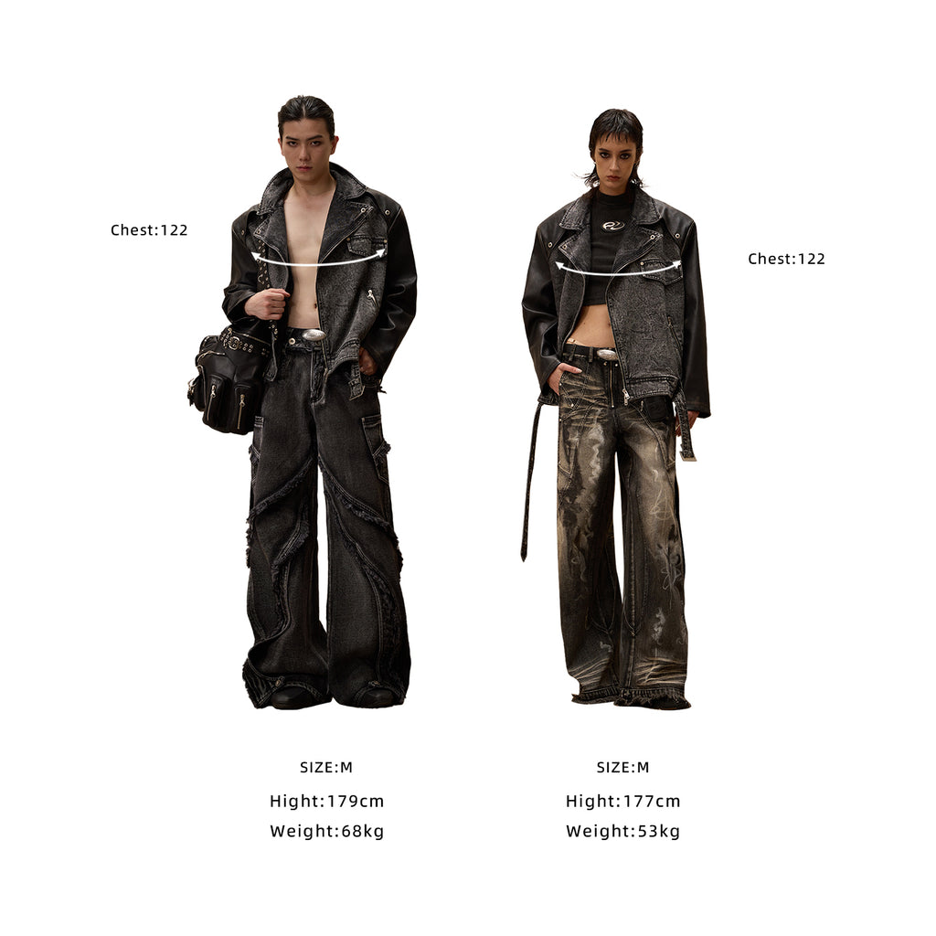 Motorcycle Denim Leather Jacket