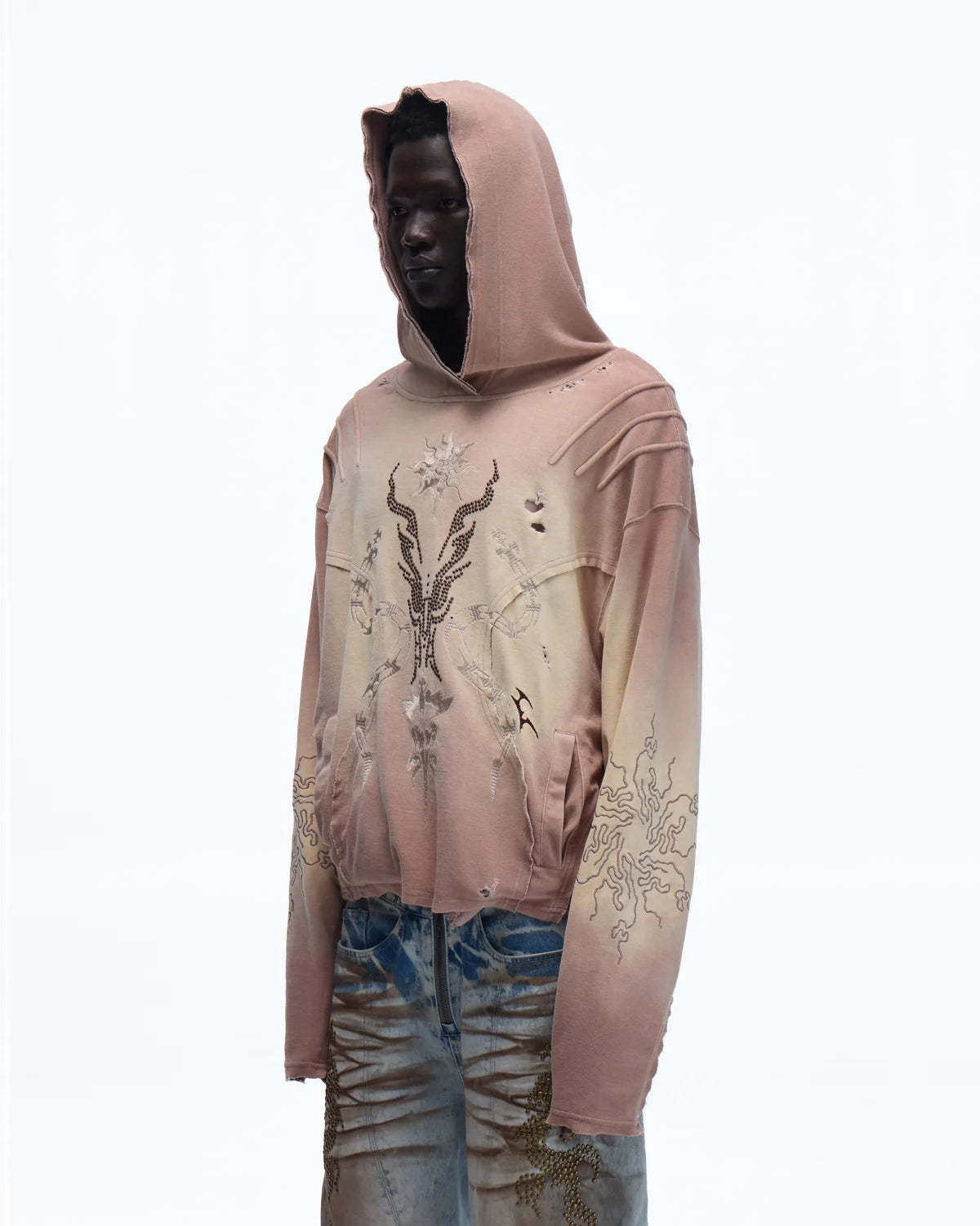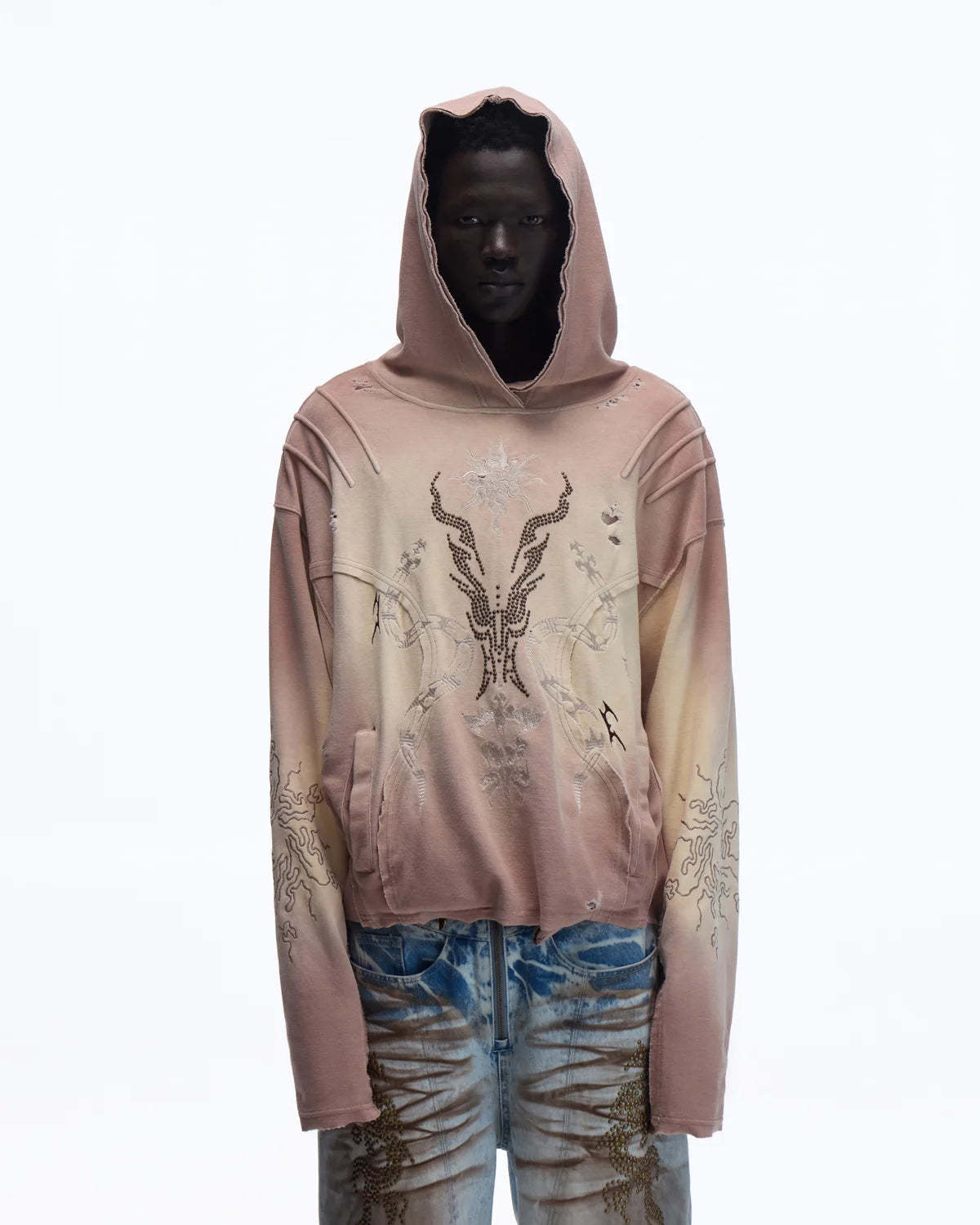 Rhinestone Embroidered Hoodie