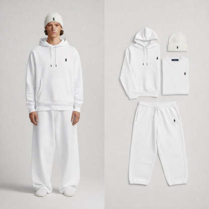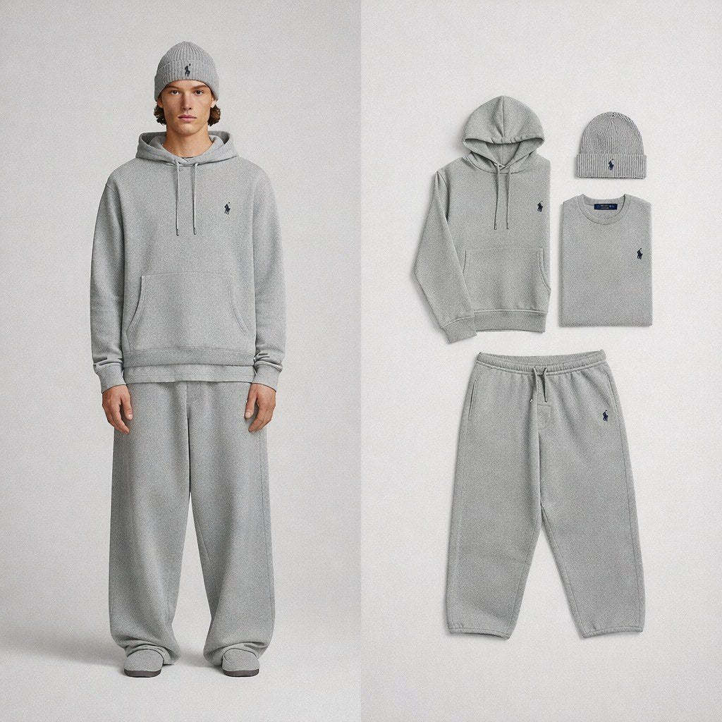 Discover the RL™ Essentials Baggy Set, an exclusive selection of iconic pieces designed to combine style, comfort, and versatility. The set includes a hoodie, joggers, T-shirt, and cap, all crafted in an elegant grey mélange and finished with the signature embroidered Polo logo. Soft, durable, and perfect for both everyday casual wear and relaxed moments, each item delivers the refined quality that defines the brand.