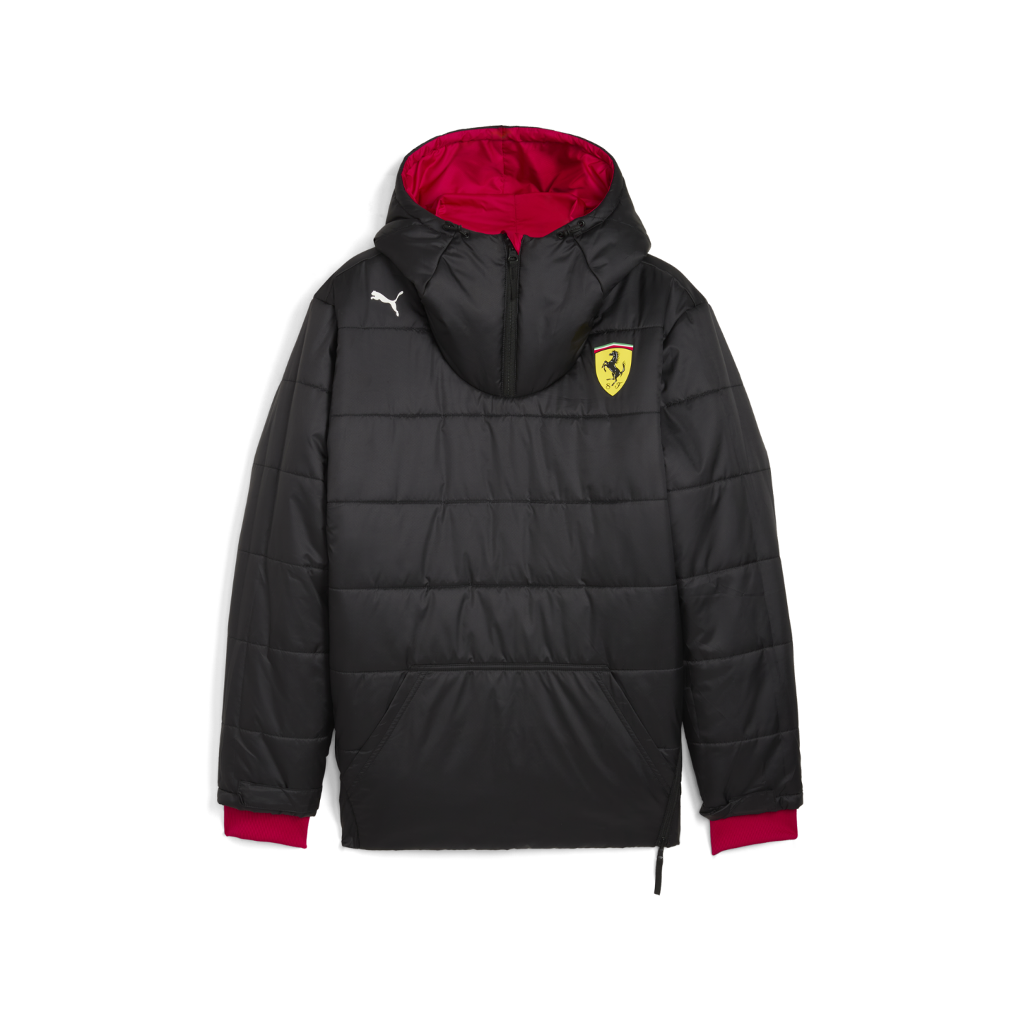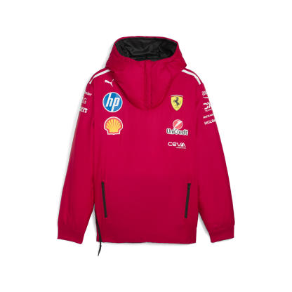 Embrace the spirit of race week with PUMA and Scuderia Ferrari's latest creation. This reversible jacket features the team's new darker red livery colors, blending elegance and performance. With hand pockets and iconic branding, it's perfect for showing your Scuderia Ferrari pride, on and off the track.