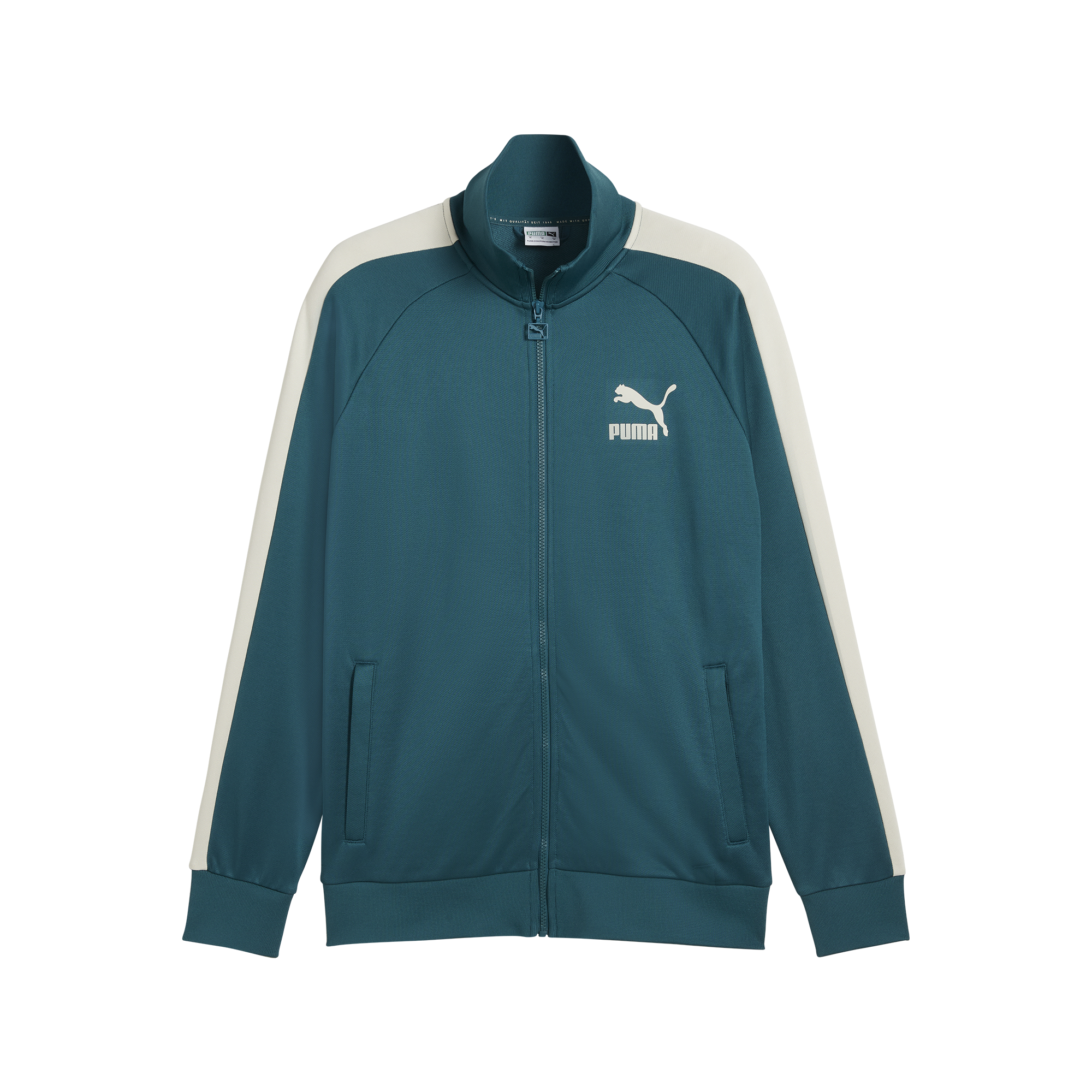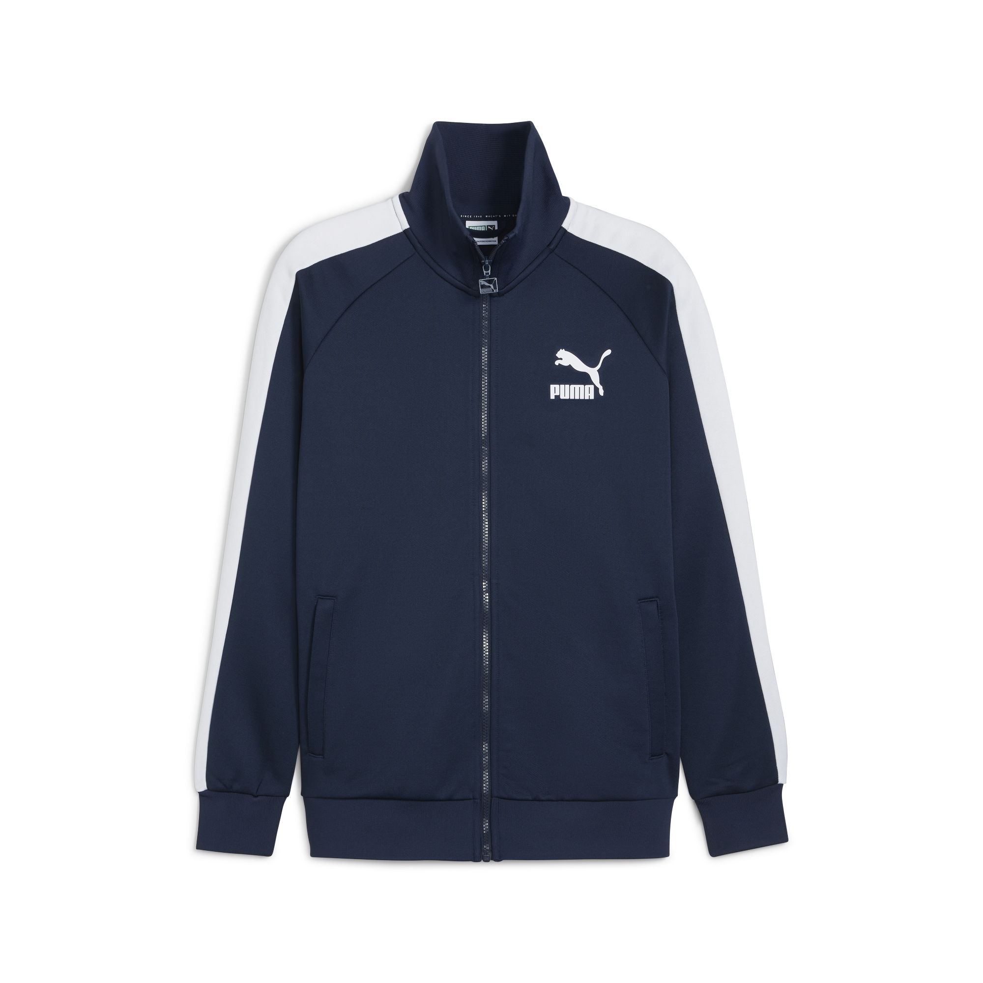 A PUMA original, the T7 track-inspired collection made a name for itself with 7cm signature stripes and quickly became as popular on city streets as it was on the training grounds. Hidden away in our archives, the suit has been faithfully replicated, and is just as iconic today as it was back then. With sleeve striping and a sleek fit, this sporty jacket will have you bringing the classics back in style.